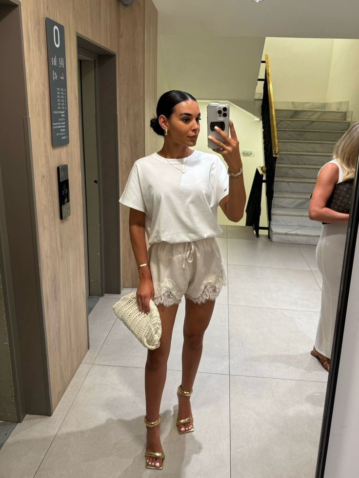 What makes lace trim satin shorts so irresistible this summer is how seamlessly they transition between moods and occasions. They can be girly and romantic, relaxed and casual, or sleek and glamorous, all depending on how you choose to style them. Whether in timeless white, romantic cream, or jewel-toned shades, they are fast becoming the modern alternative to denim cutoffs a softer, sleeker, and infinitely more chic option.